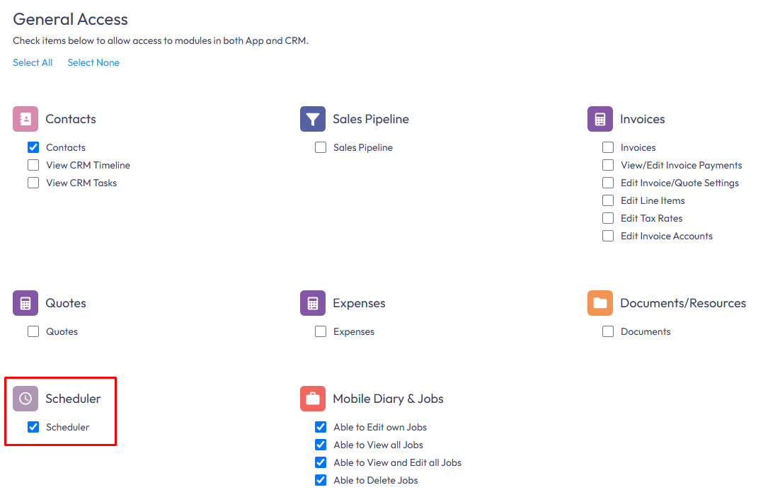 If you cannot see or view the Scheduler it may be because you do not have the permission set for your User account or User Group to be able to view or use the Scheduler.
